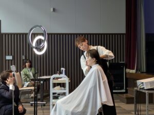 メイクアップされとる松本さんがモデルさんを使って