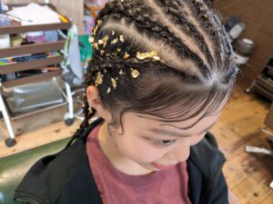 この、コーンロウ(裏編み込み)は